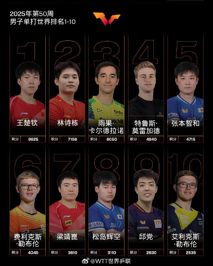 12月9日策略大赢家,国际乒联公布2025年第50周世界排名。