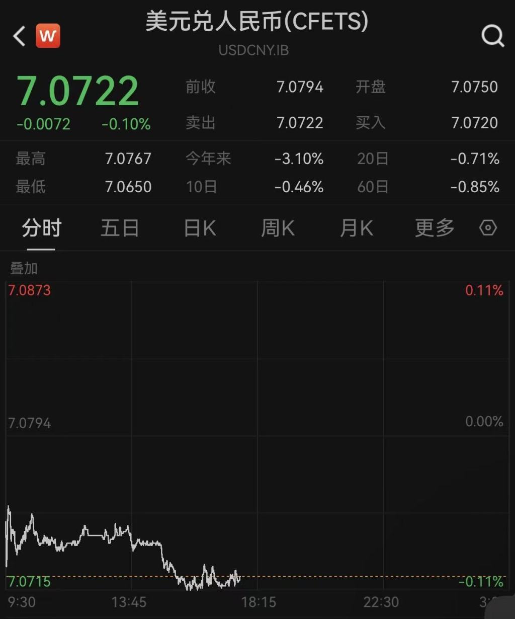 中间价方面,12月1日,人民币对美元中间价报7.0759,调升30个基点,创2024年10月14日以来最高。