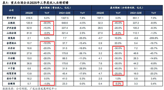 值得一提的是,三季报出来前,广发证券就已经给出了“看空”。据其发出的《白酒持续调整,大众品表现分化——2025年三季报业绩前瞻》研报预测,五粮液Q3营收同比减少30%,净利润下滑45%。