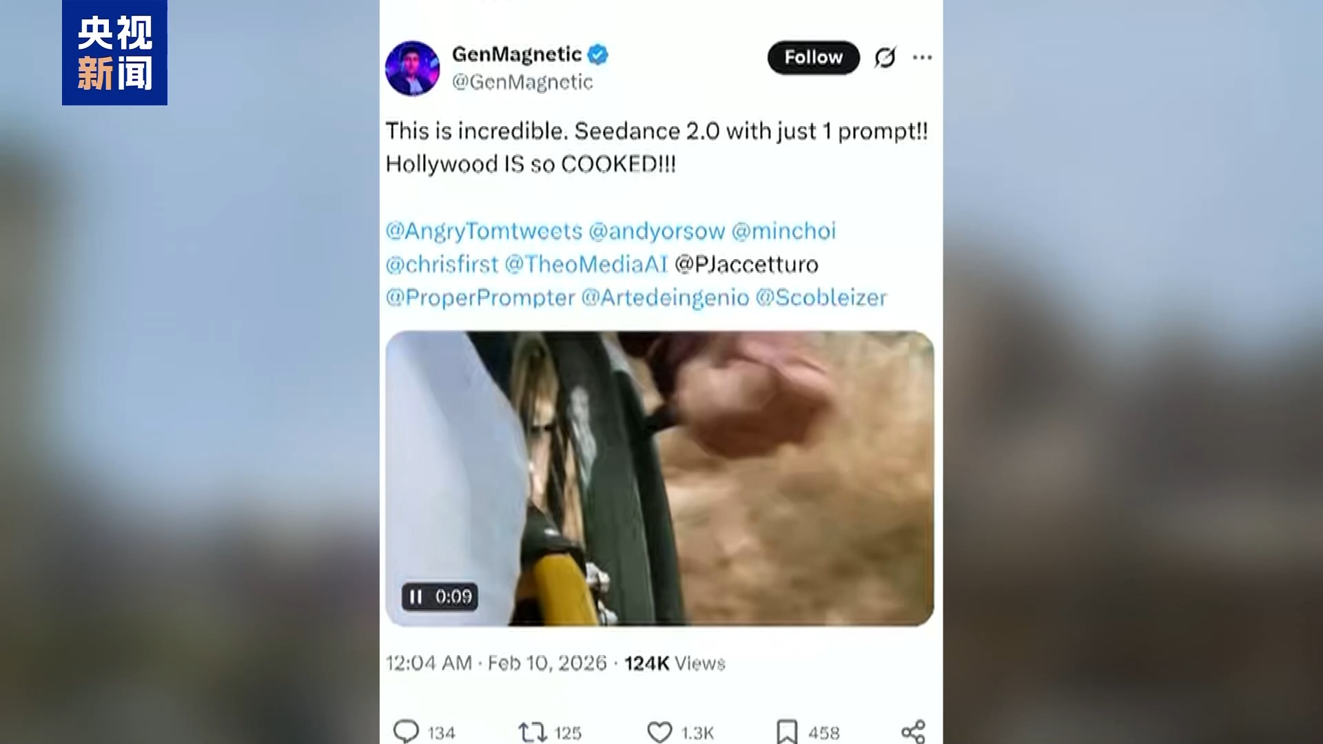 中国AI模型Seedance 2.0引发海外热议