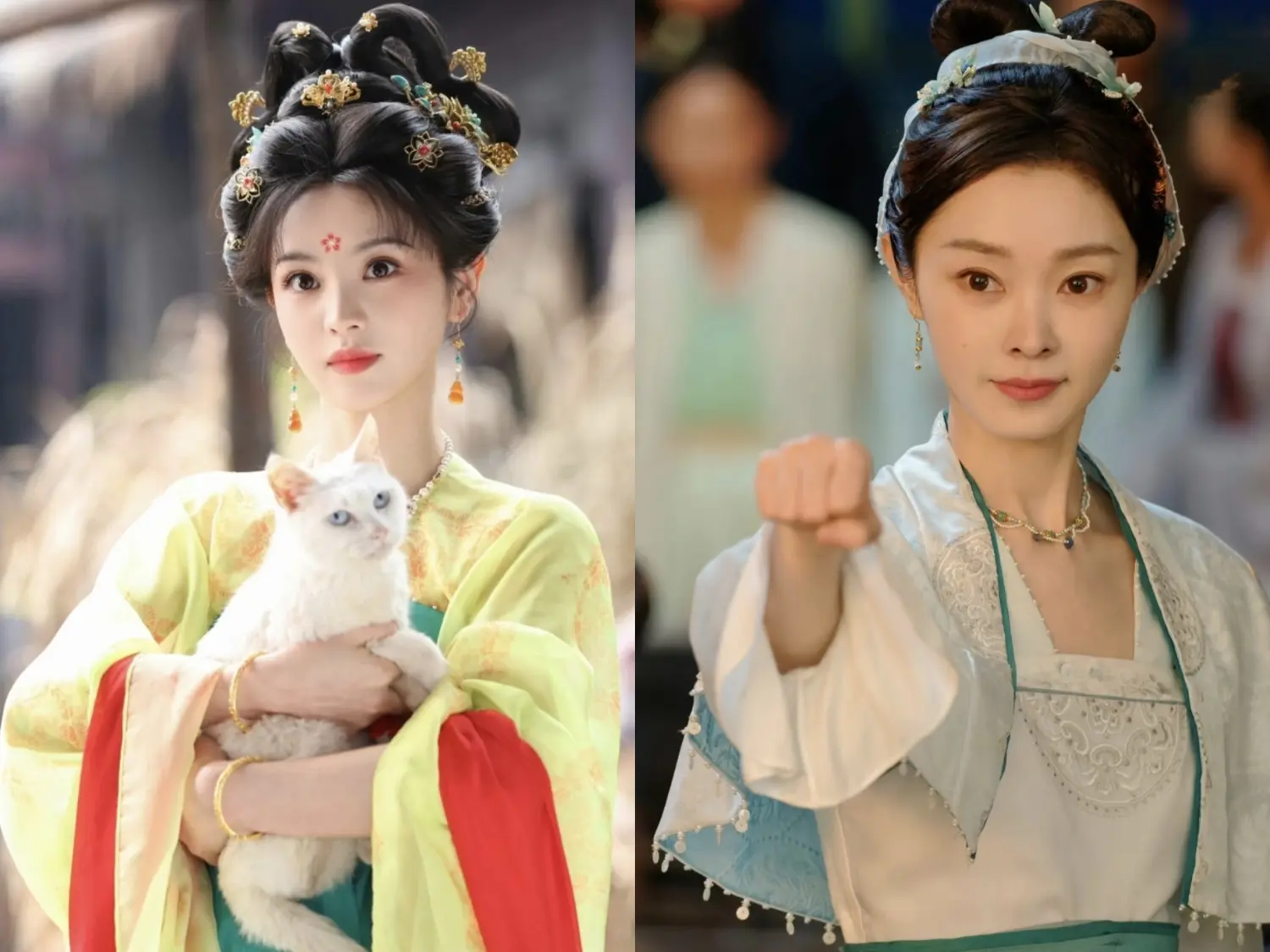 剧中她刻意留出的空气刘海和鬓角碎发,被调侃为“大学生误入古装片场”,与陈晓同框时,两人甚至被指“像PS合成的两个图层”。