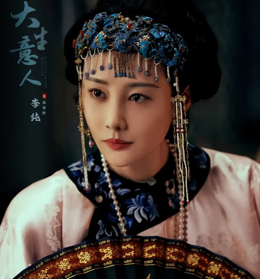 37岁的李纯状态极佳,一身大红旗装,披着皮毛斗篷,搭配头上精致的珠宝发簪,雍容华贵。